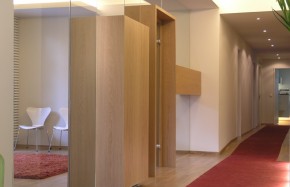 Tags: Arztpraxis, Behandlunsräume, Büro, Empfang, Köln, Kubus, Labor, Praxis, Teeküche, Wartebereich